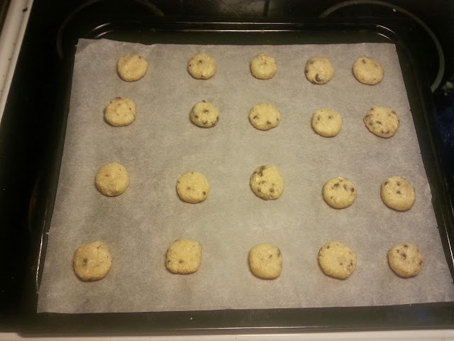 Jag är dålig på att komma ihåg att ta på mig förkläde men idag åkte det på (allt hamnar ju på magen numera, och vit topp i kombination med chokladsmet kändes riskabelt)...